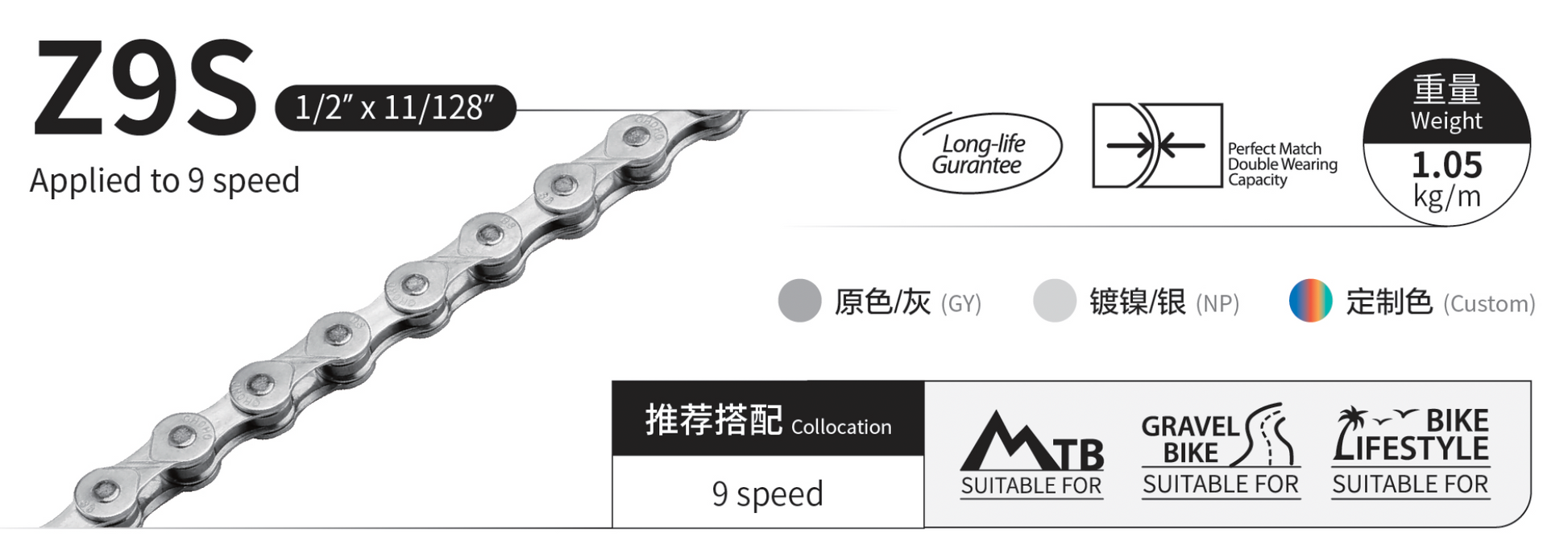 Applied to 9 speed, more suitable for high-intensity , high-fatigue long-distance riding.